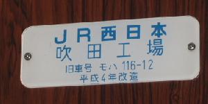 | 吹田工場 平成4年 (改造 一部ロングシート化) | JR モハ116-312 (山陽線,JR西日本) |